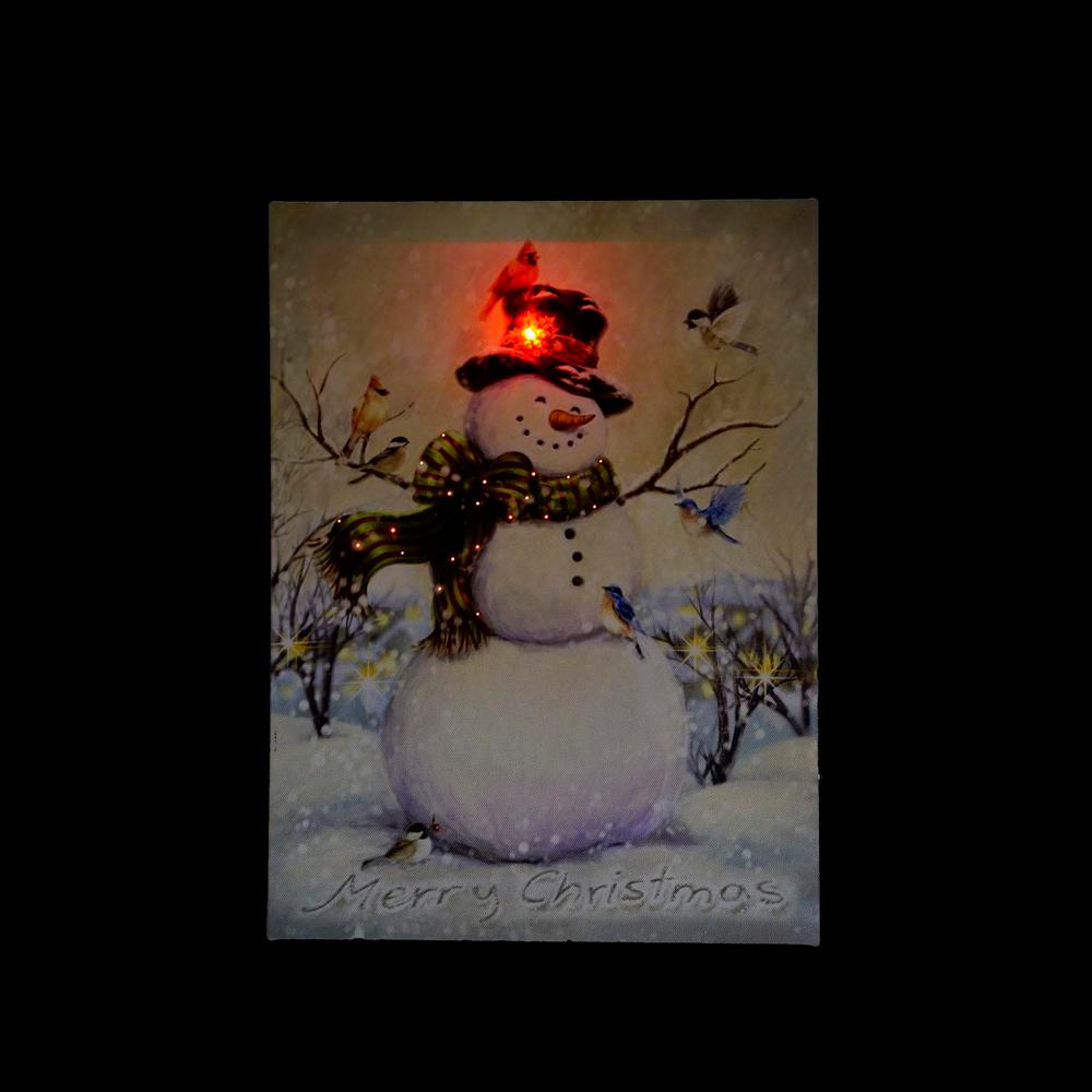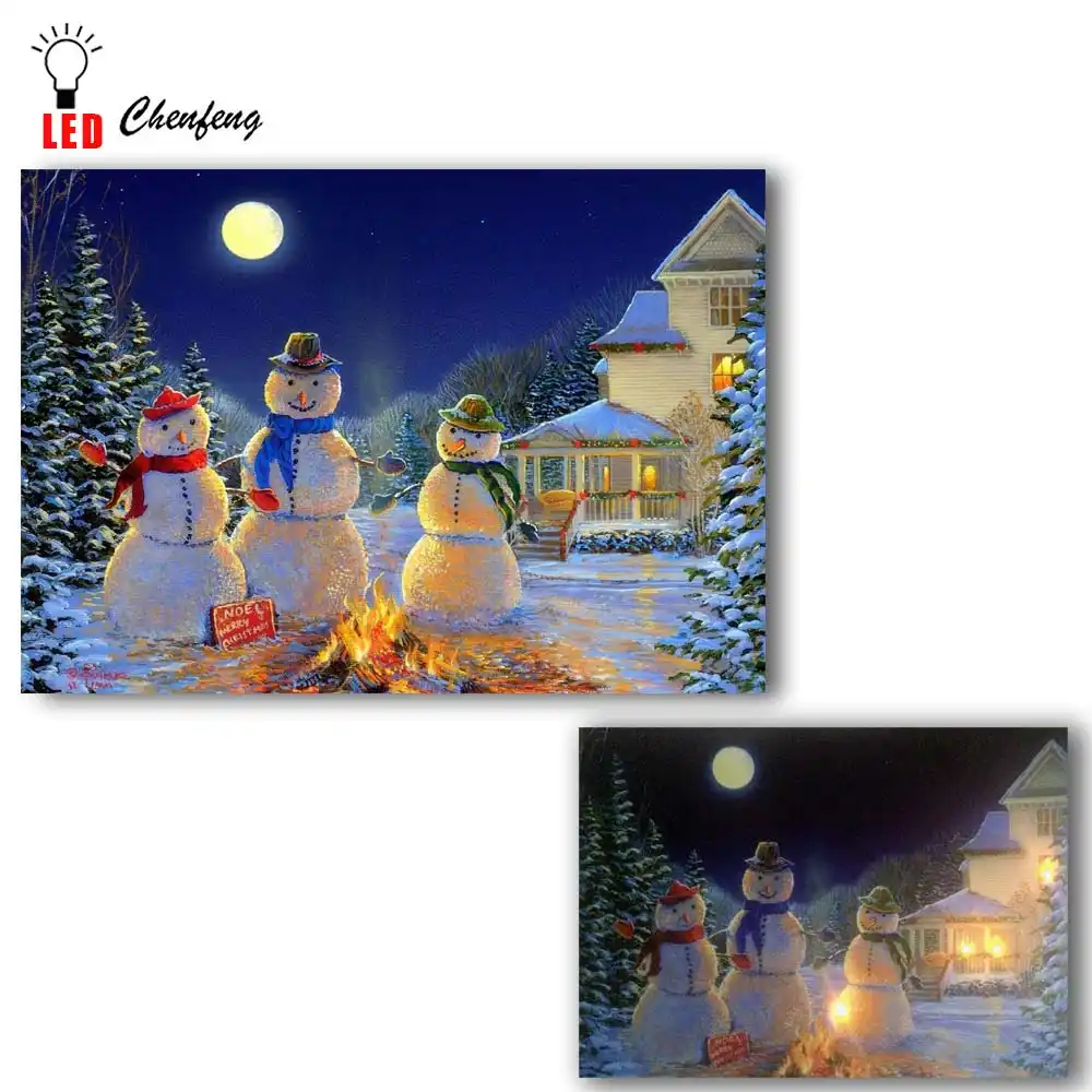 Christmas Painting On Canvas With Led Lights Snow Man With Deer