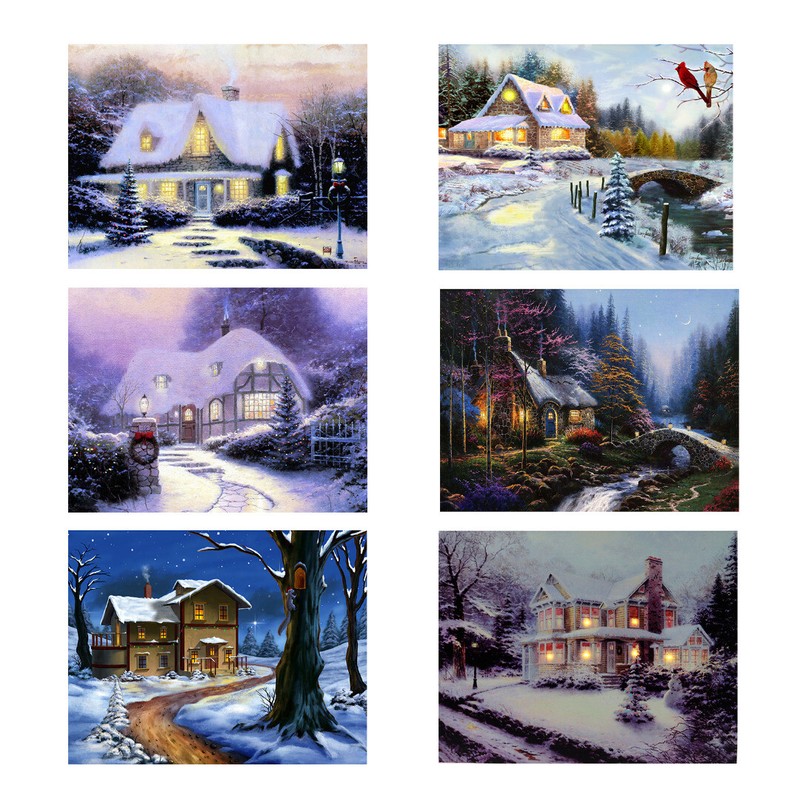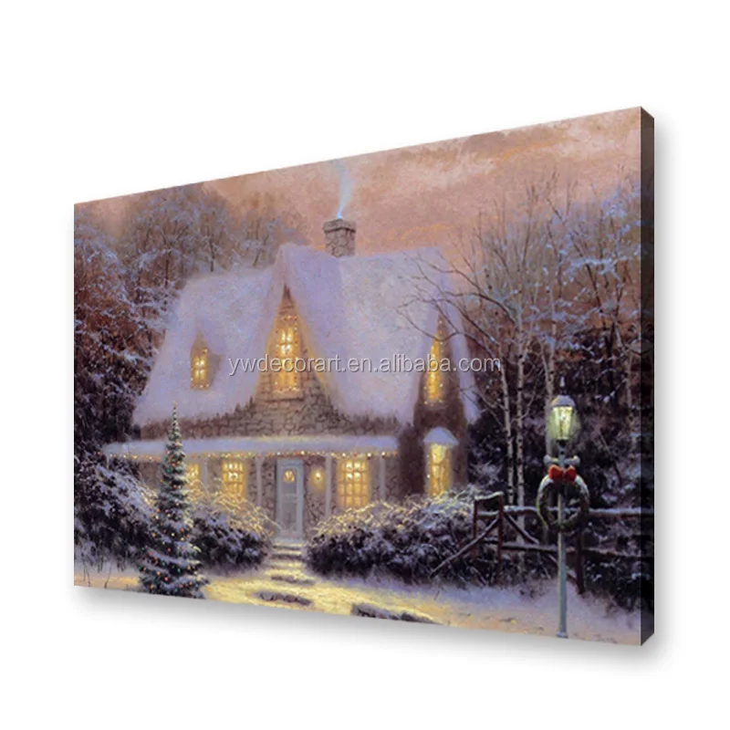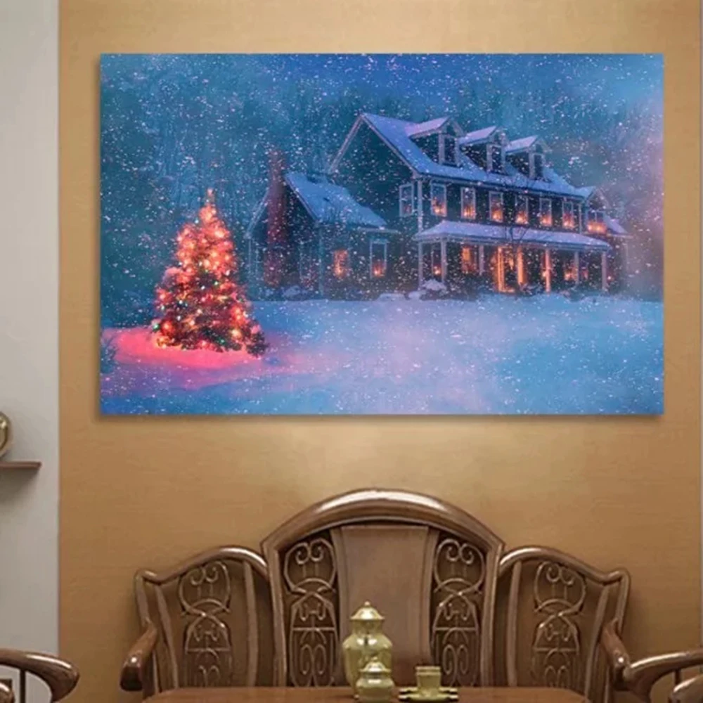 Large Size Modern Canvas Painting Light Snow House Christmas Gift