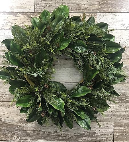 Amazon Com Large Christmas Magnolia Wreath With Juniper And Pine