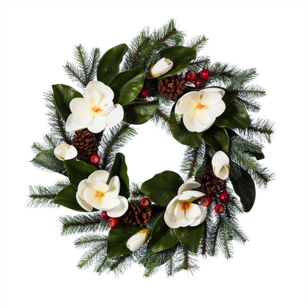 Winward Silks 24 Holly Pine Magnolia Wreath Wayfair