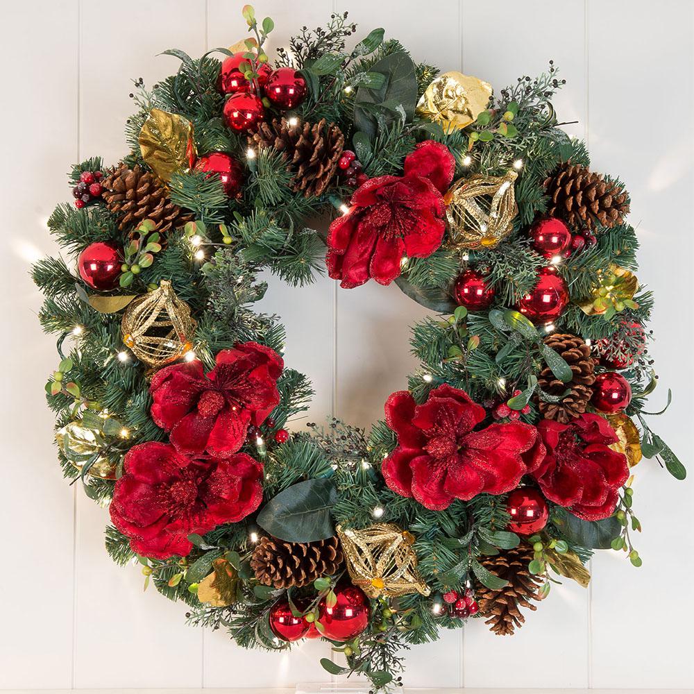 Red Magnolia Decorated Wreath Christmas World