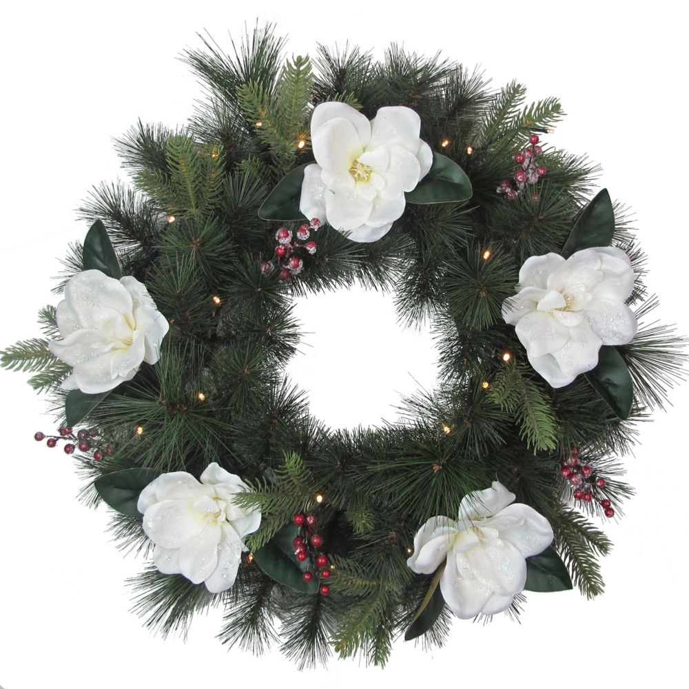 White Christmas Magnolia Door Wreath 24 In Hhgdecor