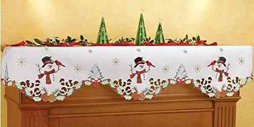 Collections Etc Decorative Snowmen Embroidered Mantel Scarf
