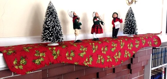 Christmas Holly Mantel Scarf Christmas Mantle Scarf Holiday Etsy