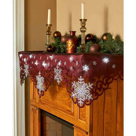 The Lakeside Collection Lighted Snowflake Mantel Scarf Burgundy