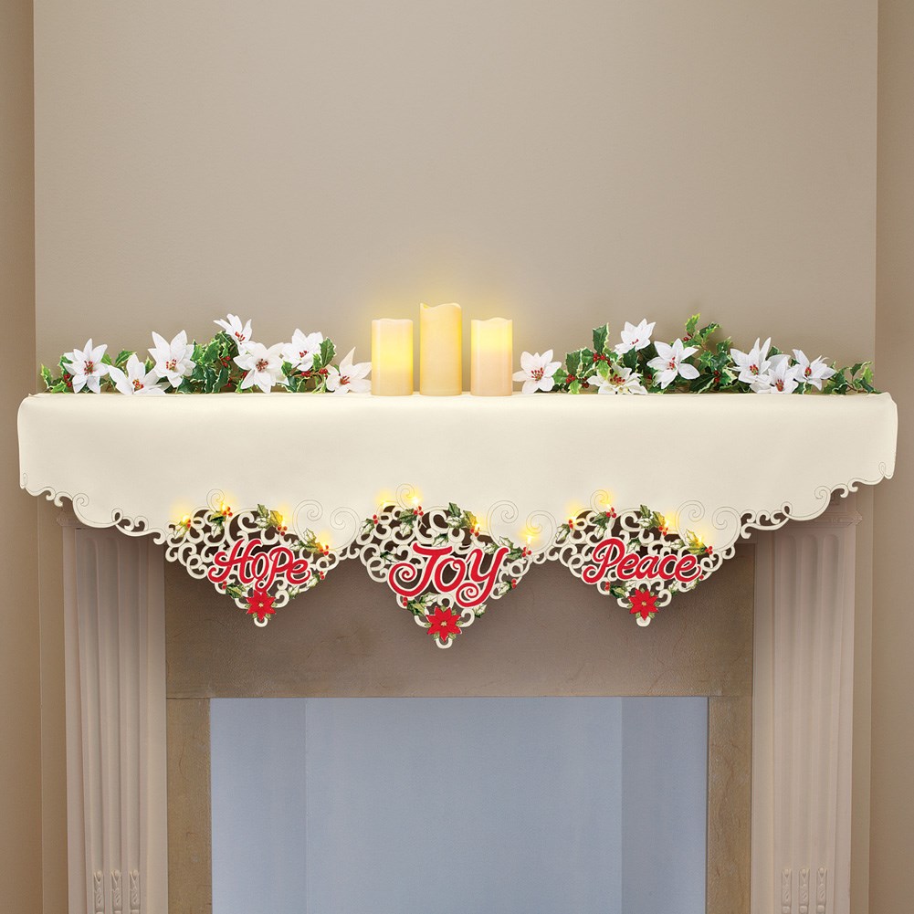 Joy Peace Hope Lighted Christmas Mantel Scarf Collections Etc