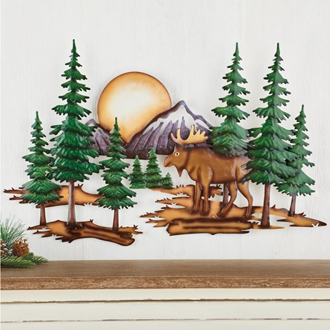 Northwoods Moose In Pine Trees Metal Wall Art Collections Etc