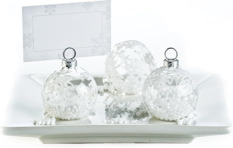 Amazon Com Snow Flurry Flocked Glass Ornament Place Card Holders