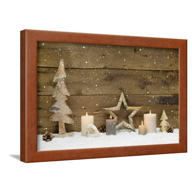 Rustic Country Background Wood With Candles And Snowflakes For Christmas Framed Print Wall Art By Imagesbavaria Walmart Com Walmart Com