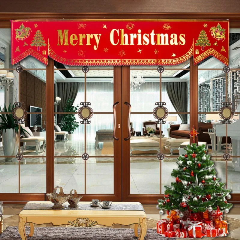Decoration Ornaments Red Merry Christmas Porch Sign Door Curtain