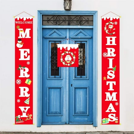 Merry Christmas Banners Front Door Welcome Christmas Porch Banners