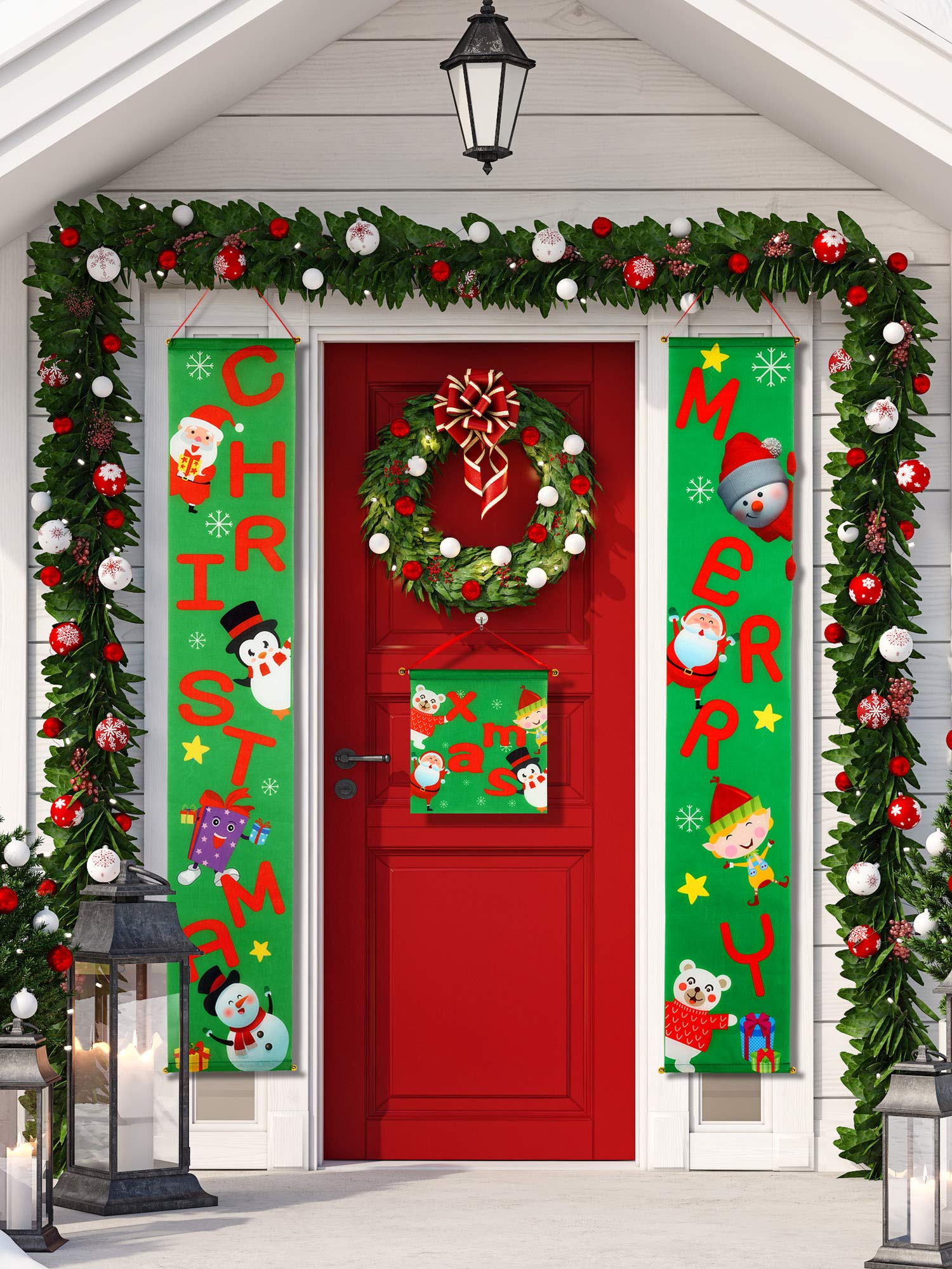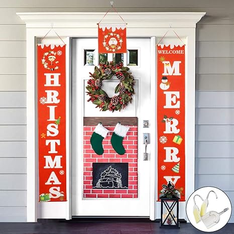 Merry Christmas Banners Front Door Welcome Christmas Porch