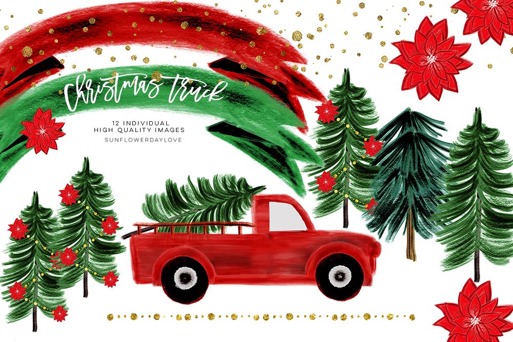 Christmas Red Truck Clipart Set Custom Designed Illustrations