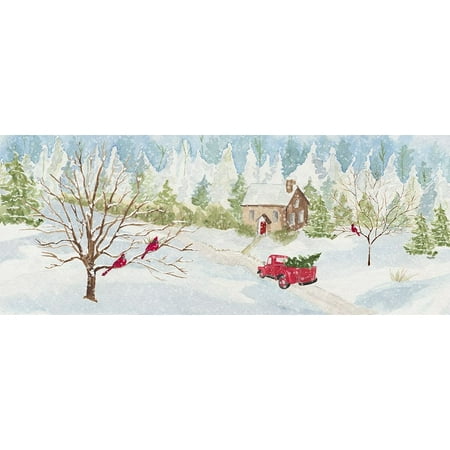 36 X 44 Panel Holiday Red Truck Christmas Tree Country Farm