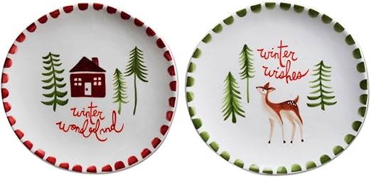 Set 2 Ceramic Plates With Christmas Reindeer Decorations