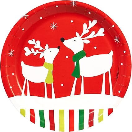 Large Christmas Paper Plates 10 Pack Reindeer Design Buy