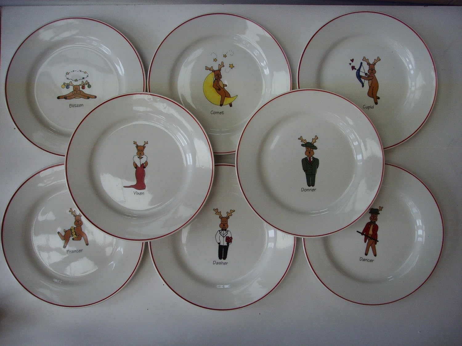 6 Christmas Reindeer Plates Dancer Cupid Donner Comet Prancer