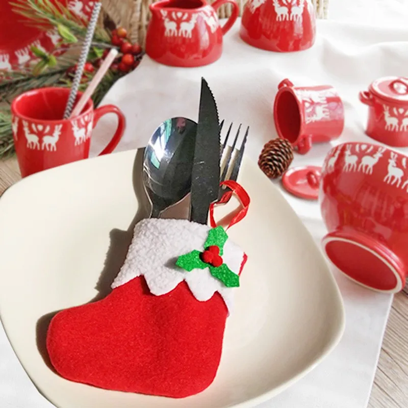 Socks Shape Christmas Decoration Party Dinner Table Silverware