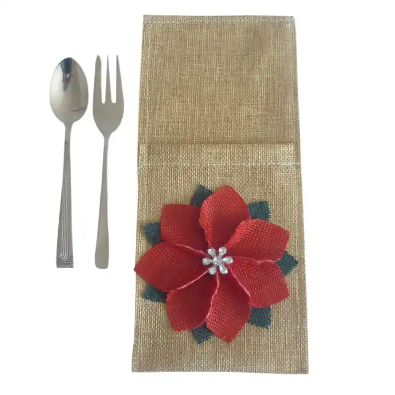 Utensilio De Arpillera Porta Cubiertos Con Poinsettia Por