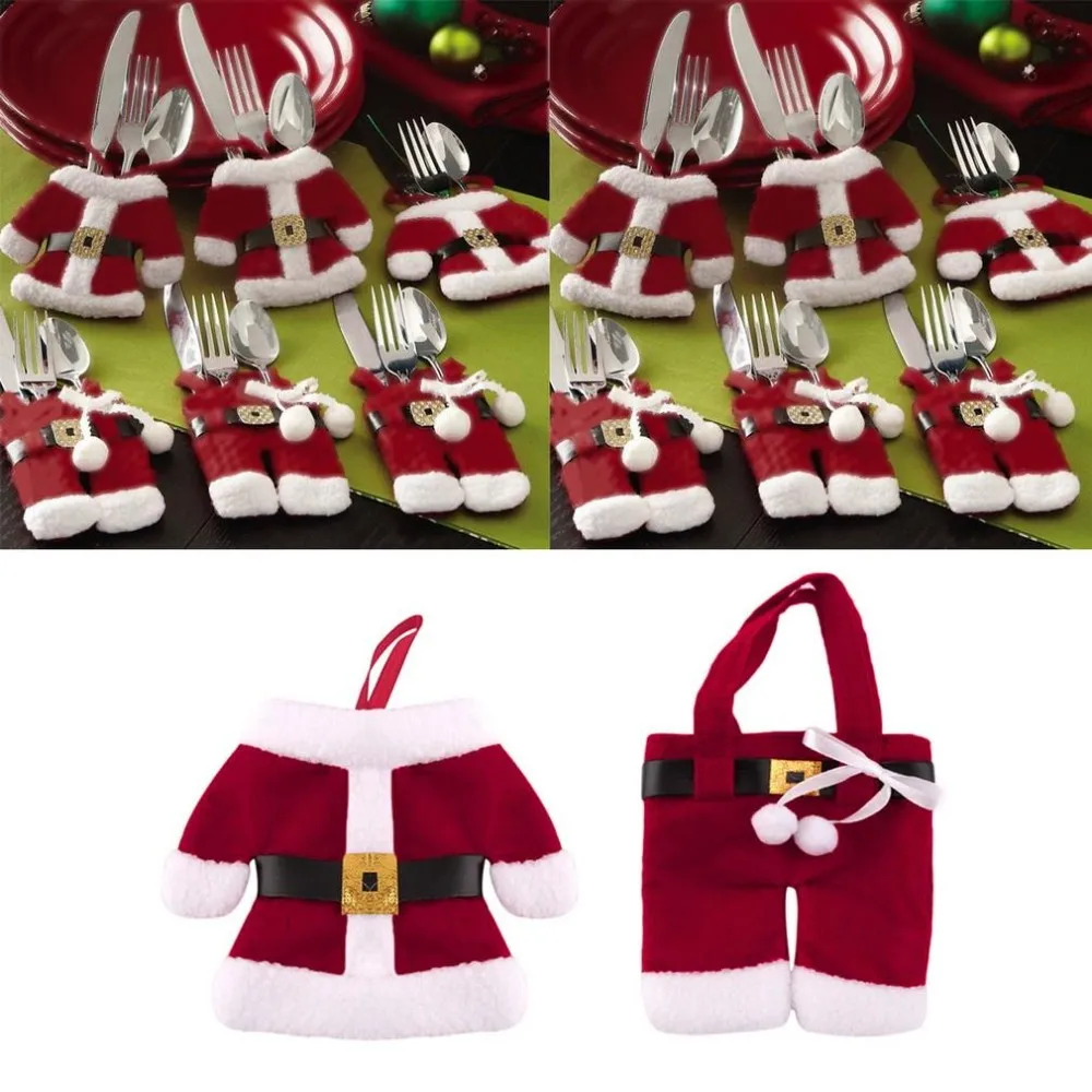 Tableware Cover Santa Suit Christmas Silverware Holder Pockets Red