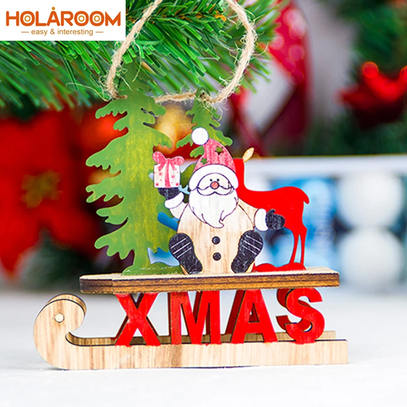 1pcs Christmas Sleigh Pendant Santa Snowman Xmas Tree Wooden