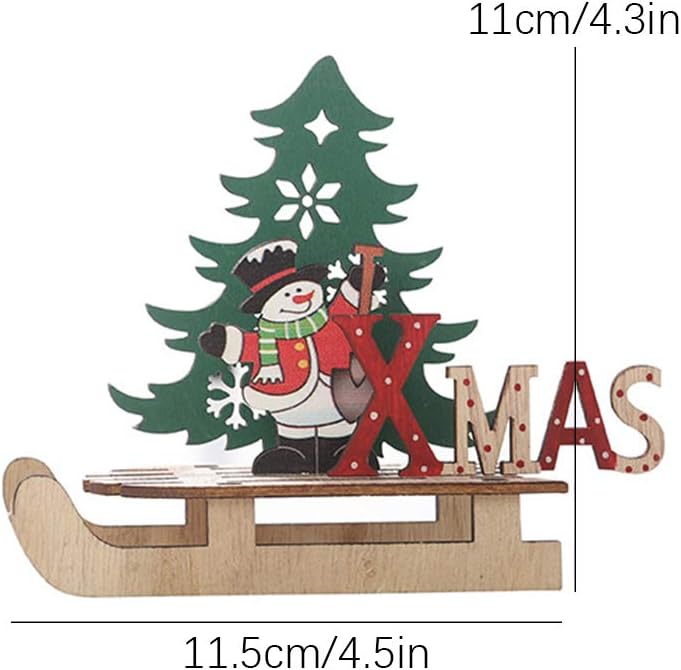 Zzm Small Wooden Christmas Sleigh Cartoon Xmas Desktop Decoration
