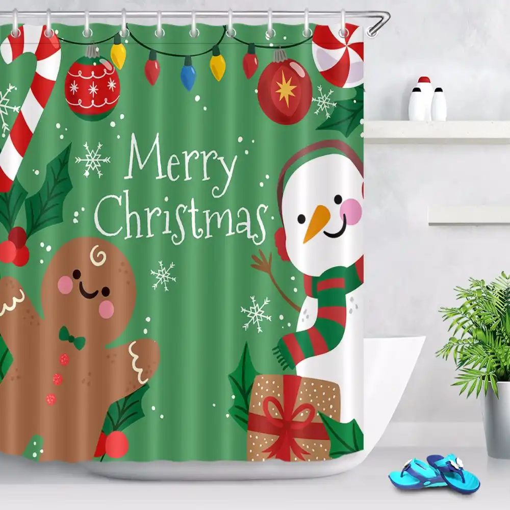 Christmas Santa Claus Snowman Printing Waterproof Bathroom Shower