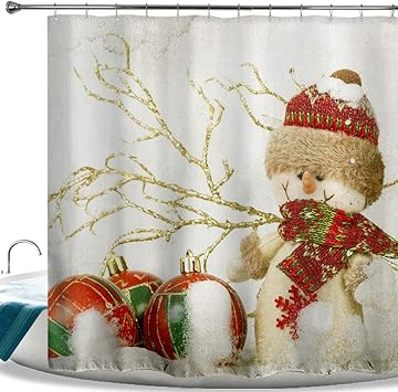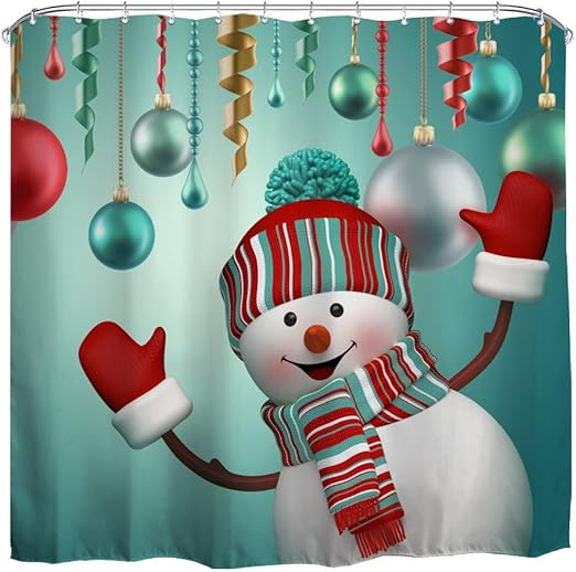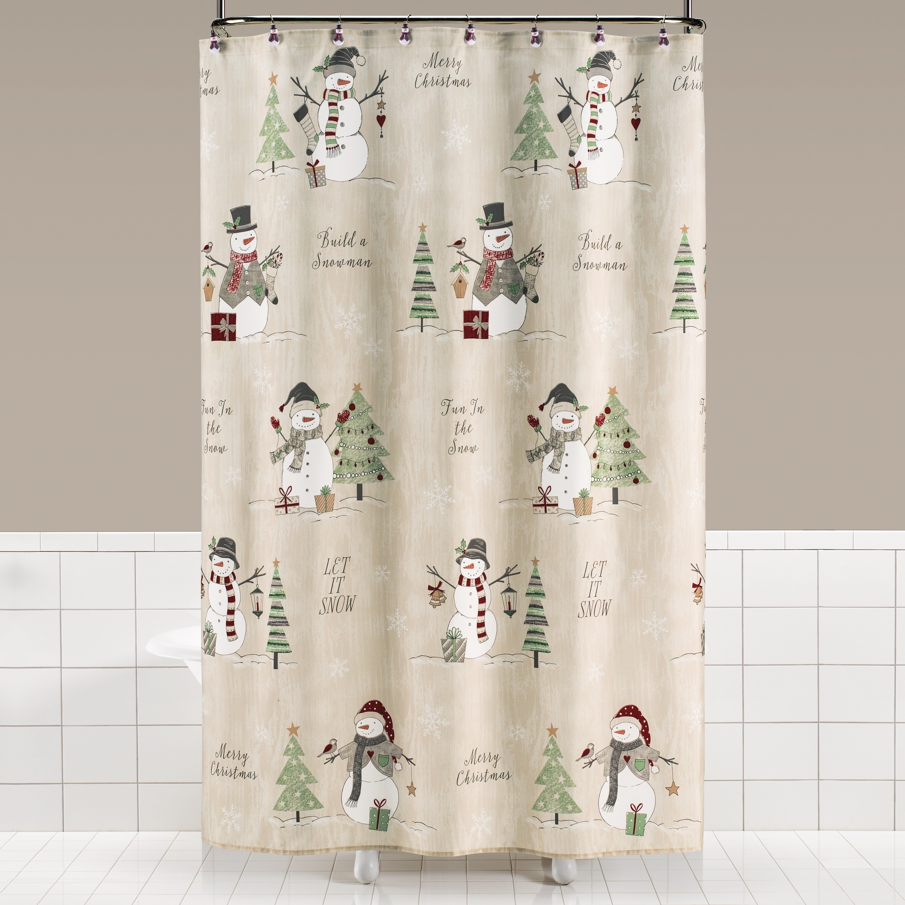 Beatrice Christmas Holiday Snowman Shower Curtain With 12 Resin