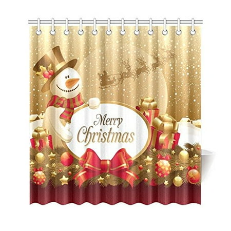 Gckg Christmas Snowman Shower Curtain Red Golden Bell Ball