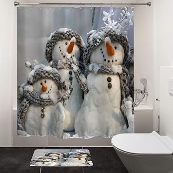 Amazon Com Hiyoo Christmas Snowman Shower Curtain Sets Xmas New