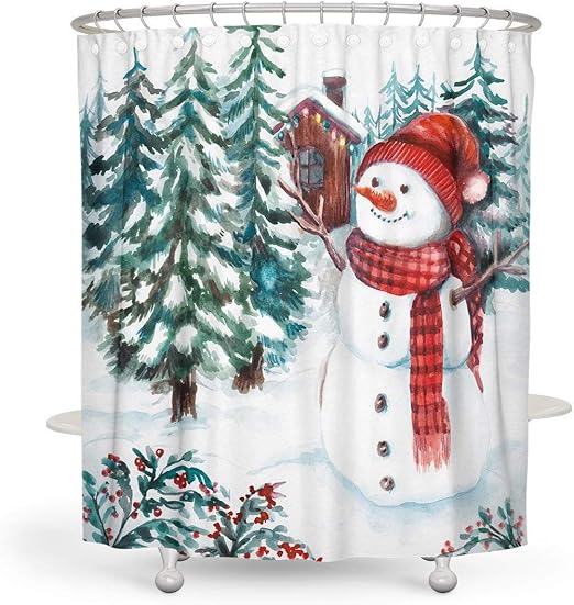 Amazon Com Hiyoo Christmas Snowman Shower Curtain With Hooks
