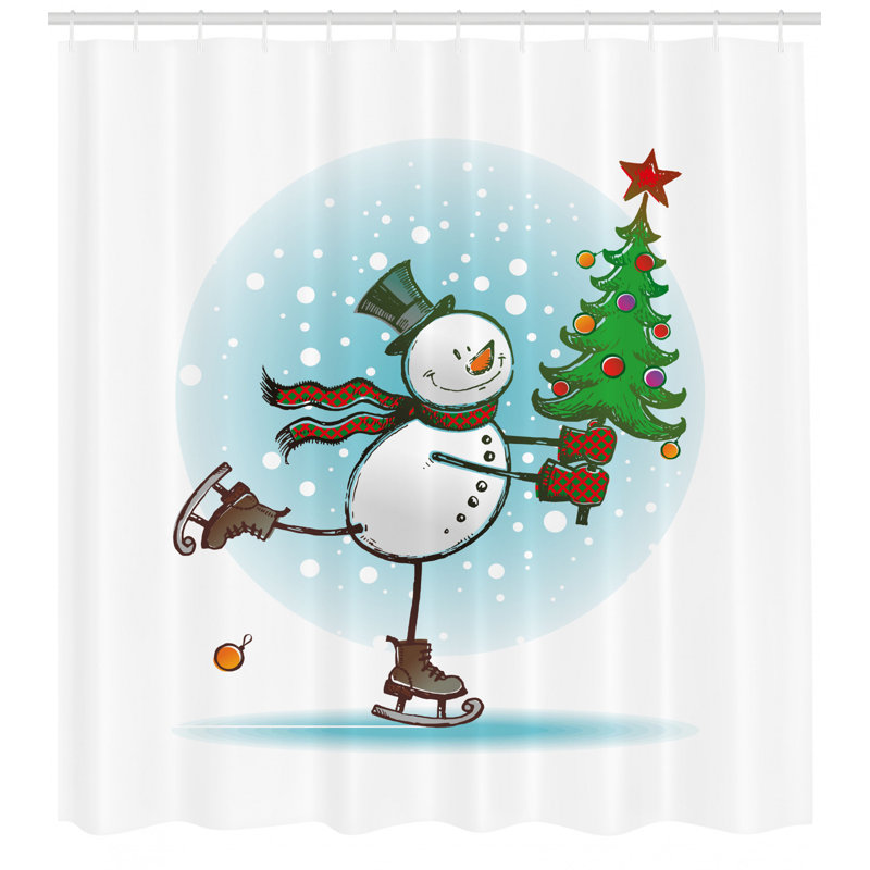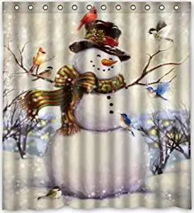 Holiday Shower Curtain Christmas Snowman Shower Curtain Polyester