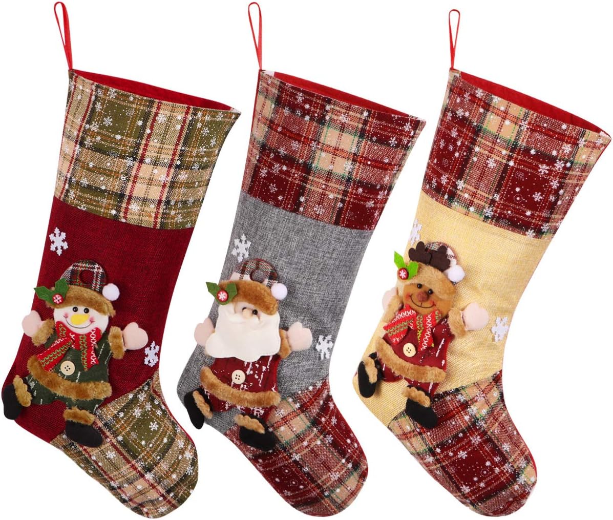 Red Buffalo Plaid Christmas Stocking Jute Cuff 3pcs Stockings