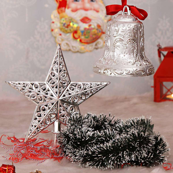 Silver Christmas Star With Bell And Wreath Gift Send Christmas