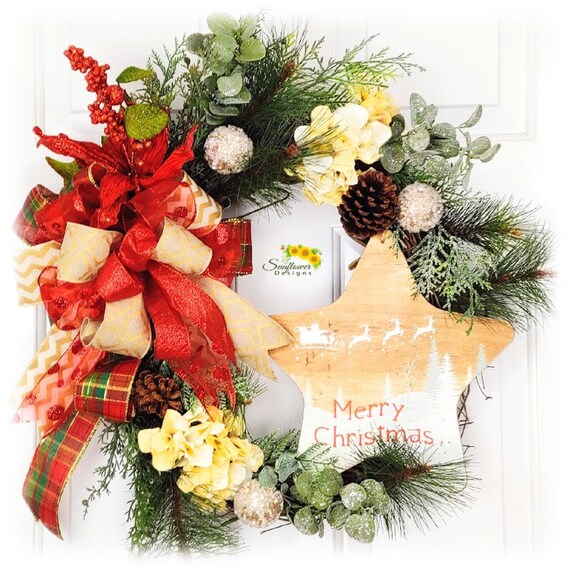 Christmas Star Wreath For Front Door Xmas Wreath Christmas Etsy