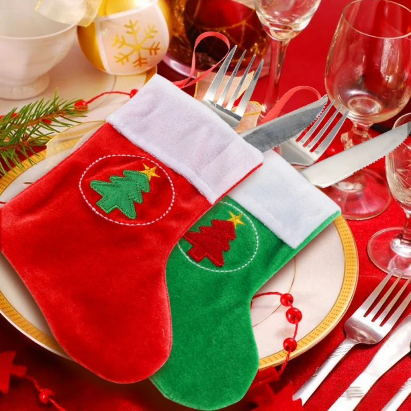 Christmas Stocking Xmas Silverware Tableware Dinner Party Decor