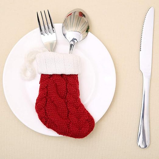 6pcs 11cm Knit Mini Christmas Stockings Silverware Holders