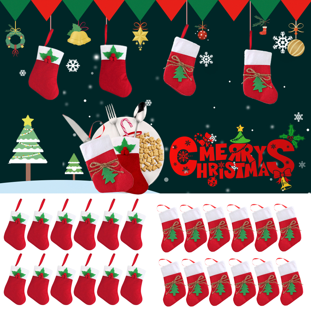 12pcs Set Lovely Mini Christmas Stocking Cutlery Bag Holder Sock