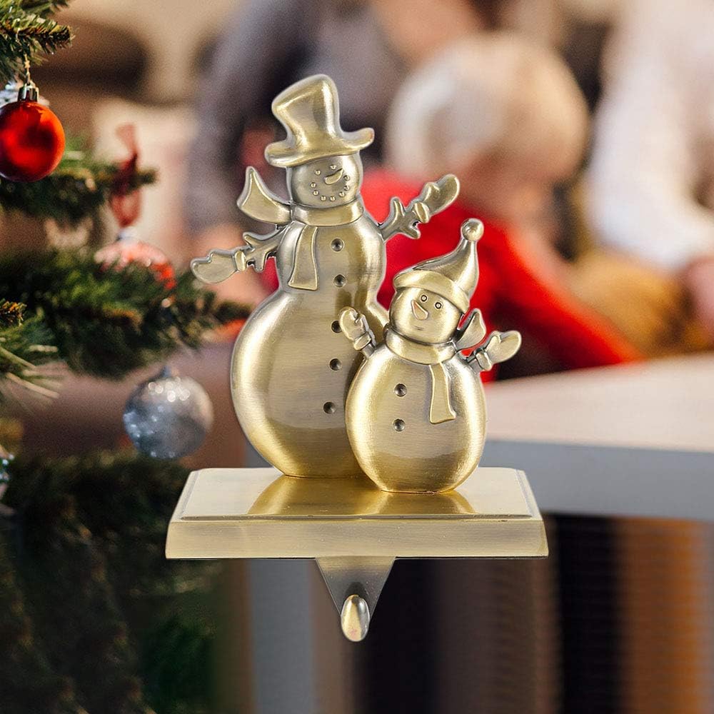 Christmas Holiday Woodland Snowman Stocking Holder Hanger Gold