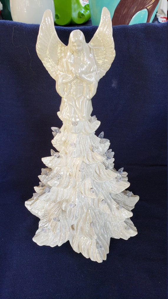 Ceramic Christmas Tree With Angel Topper Hand Painted Etsy