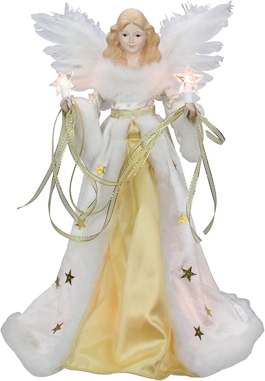 9 Ivory And Gold Lighted Angel Tree Topper Ul2111 Christmascottage