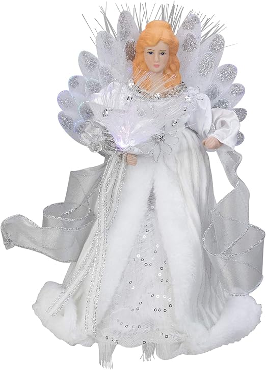 White And Silver Angel Fiber Optic Light Up Christmas Tree Topper