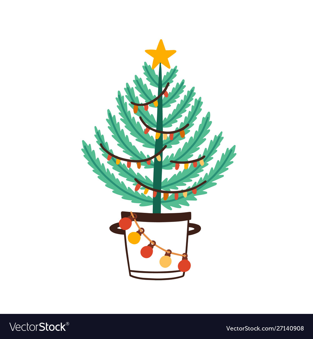 Christmas Tree In Bucket Flat Royalty Free Vector Image