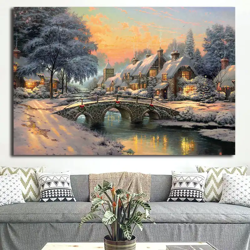 Thomas Kinkade Bridge Christmas Tree Canvas Prints Picture Modular