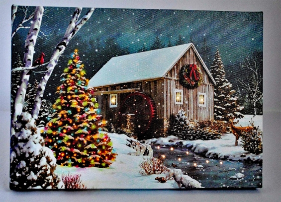 Tabletop Led Lighted Print Snow Covered Mill With Christmas Tree