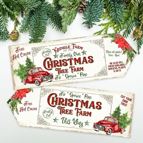Retro Christmas Tree Farm Signs Xmas Decoration Arrows Winter Etsy
