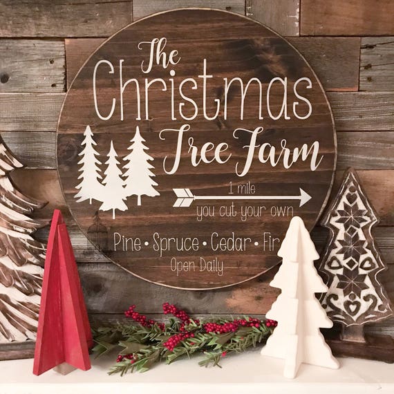 Christmas Tree Farm Sign Round Sign Christmas Tree Sign Etsy