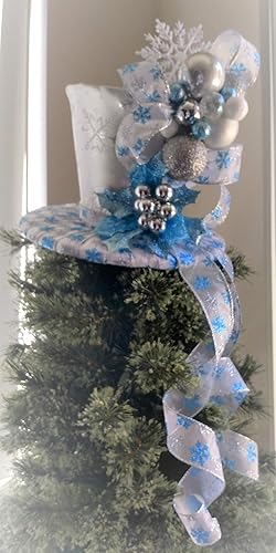 Blue And White Tree Topper Hat Top Hat Centerpiece Snowflake Top