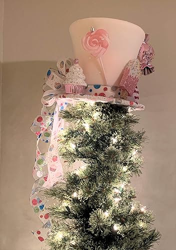 Amazon Com Pink Desserts Top Hat Christmas Tree Topper Bow Tree