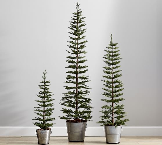 Pre Lit Pine Trees In Galvanized Bucket Pottery Barn